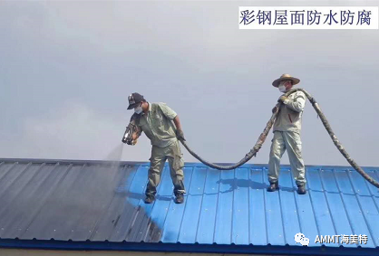 高性能聚脲防水材料在彩鋼瓦防水中應(yīng)用,涂層致密、無接縫、抗?jié)B透,即使受到外界的熱脹冷縮,涂膜也不會開裂,而且還能將彩鋼瓦整體“裹住”,起到防水作用,能有效阻止屋面老化生銹。即使彩鋼瓦銹透,噴涂聚脲后,仍能起到很好整體防水作用,從而使彩鋼瓦的使用壽命延長10年以上。綜合計算二次維修費用低,避免更換屋面板停工停產(chǎn)造成的損失,同時減少屋面板更換導(dǎo)致的建筑垃圾處理,是目前市場上性能極其優(yōu)良、品質(zhì)極其穩(wěn)定的屋面防水材料。