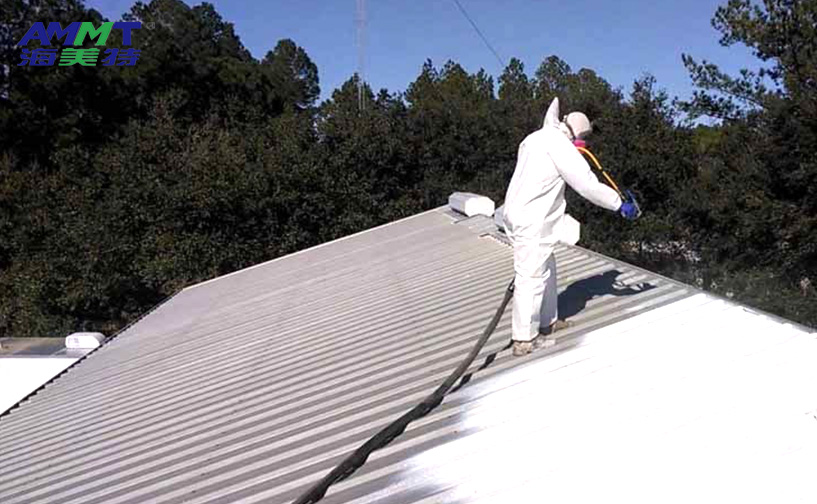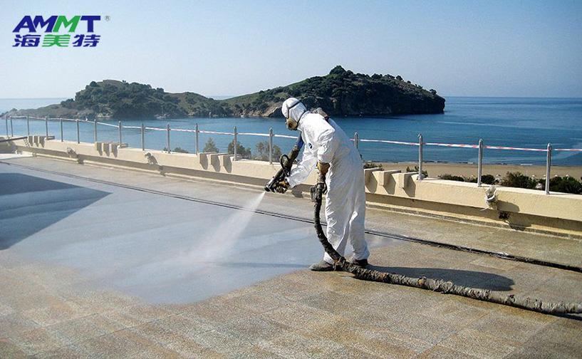 海美特自主研發的第三代噴涂聚脲彈性體材料,通過A組分改性半預聚體與B組分端氨基聚醚、胺擴鏈劑、納米填料、顏料組成,現場噴涂成型。